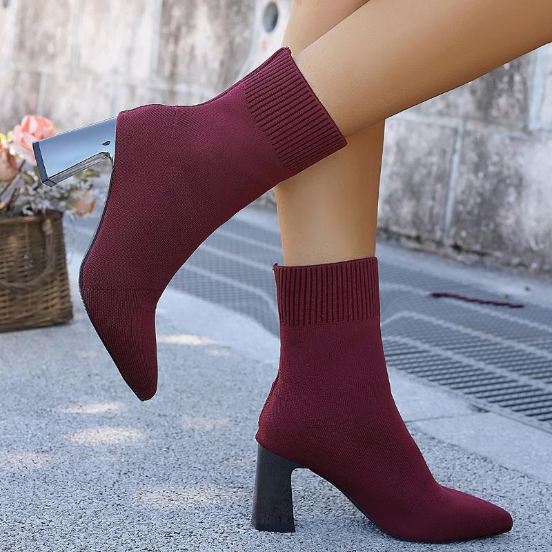 Knit Single Boots Autumn New Pointed Toe Sleeve Breathable Non-Slip Wear-Resistant High Heels