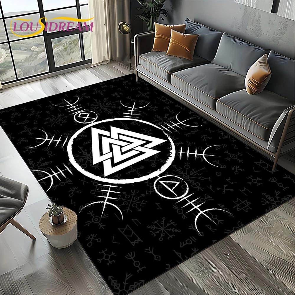 Odin Viking Symbol Valknut Nordic Valhalla Carpet Rug for Living Room Bedroom Home Sofa Decoration,Area Rug Non-slip Floor Mat