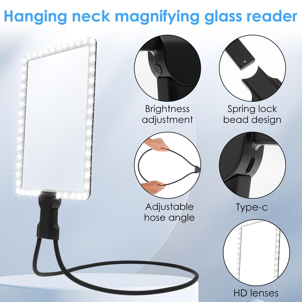 Neck Wear Magnifier Glass LED Magnifying Hands Free Full Page Reading Magnifier 7.5 X 10.2 Inch for Elderly Reading Magnifier