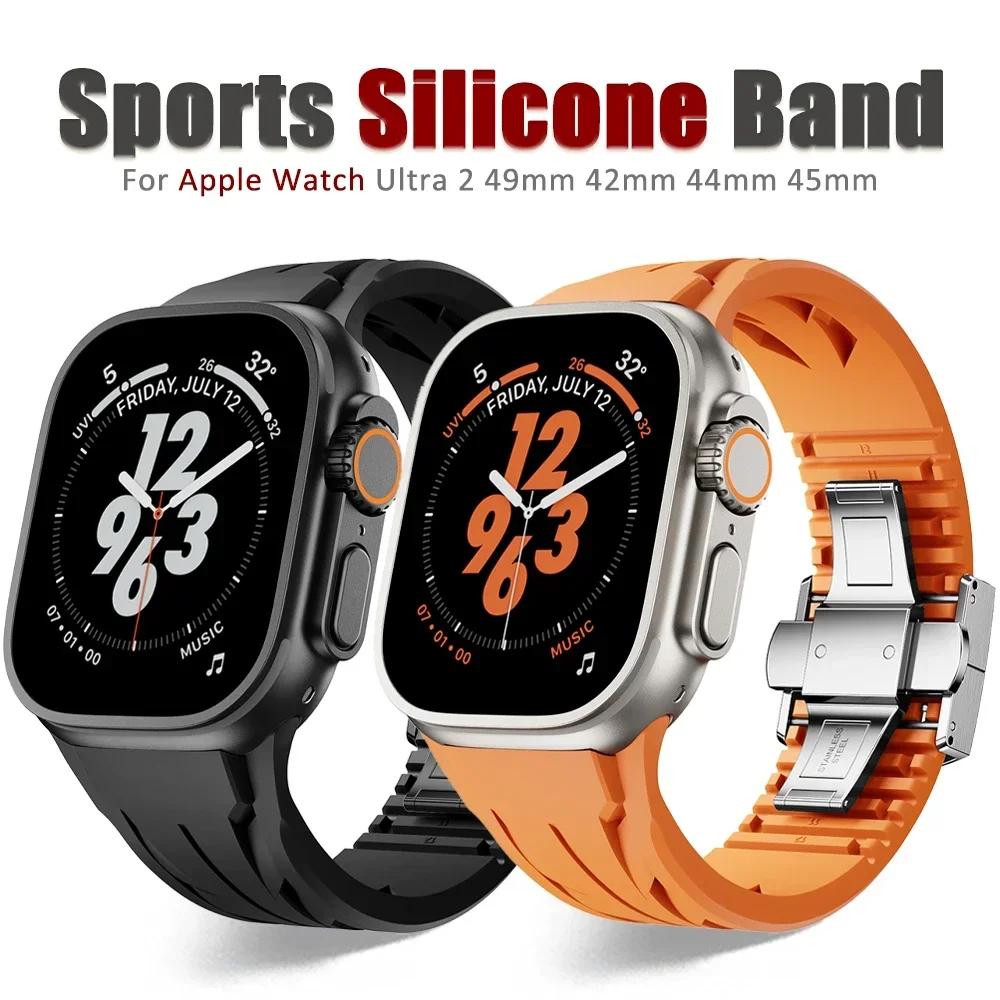 Silicone Band for Apple Watch Ultra 2 49mm 10 46mm 9 8 7 45mm 44mm Premium Bracelet for Iwatch Series 6 5 4 Se Cut To Size Strap