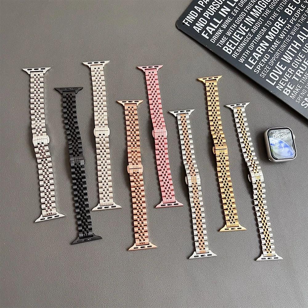 Women Slim Straps for Apple Watch Ultra 2 49mm 10 46mm 42mm Stainless Steel Band Iwatch Series 9 8 7 6 5 SE 41mm 40 45mm 44 38mm