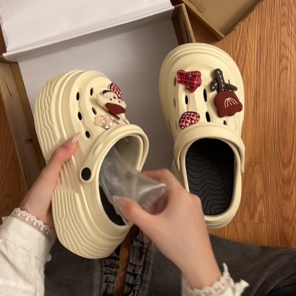 Popular Cute White Thick-soled Shit-stepping Hole Shoes, Summer Wear Heightening Bag Head Sandals