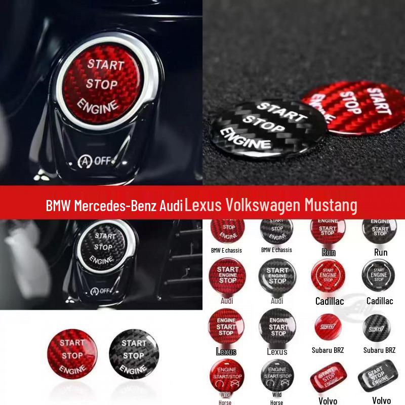 Real Carbon Fiber One-Button Start Ignition Sticker for BMW, Mercedes-Benz, VW, Toyota, Nissan, Honda, Suzuki