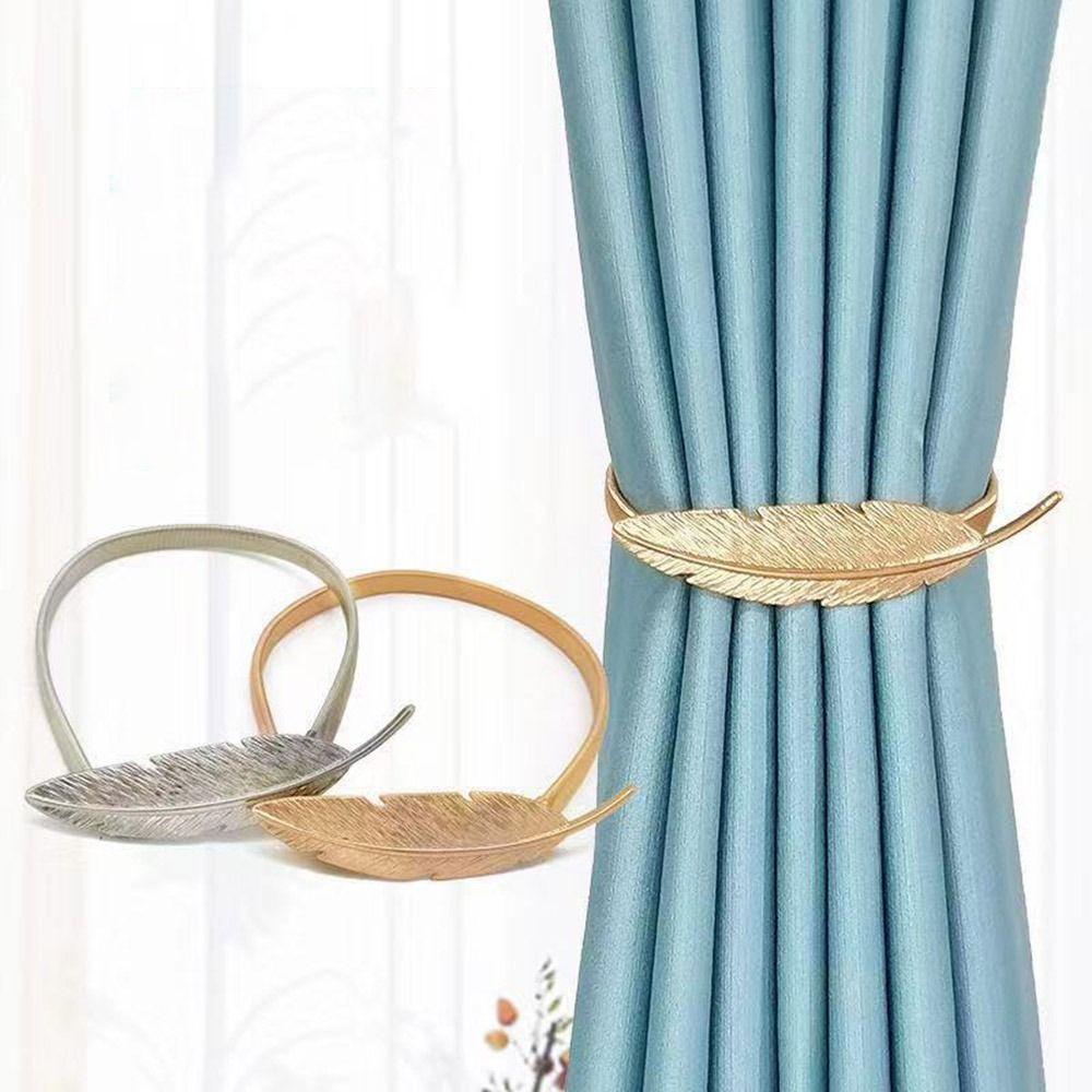 Elk Feather Curtain Tieback Elastically Leaf Peacock Peony Curtain Rope Holder Hooks DIY Stretchable Curtains Tie Backs