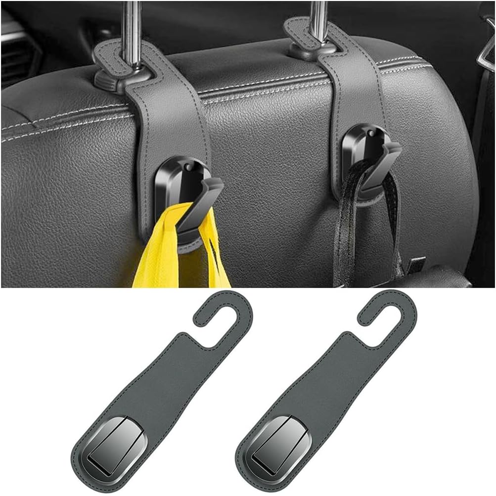 Car Headrest Hooks, 2PCS Leather Vehicle Seat Hangers for Handbag Coat Umbrellas, Multifunctional Automotive Hanging Storage Organizer Accessories,