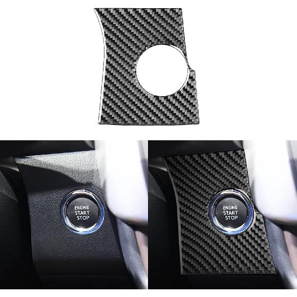 Real Soft Carbon Fiber Car Ignition Lock Panel Engine Start Stop Switch Cover Trim Sticker Auto Interior Accessories Compatible with Toyota
