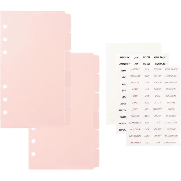 Personal A6 Dividers 6 Hole Transparent Binder Index Page Dividers with Tabs Plastic Tab Dividers with Stickers for Binders, Planner, Agenda (Pink -