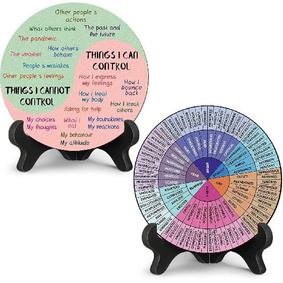 Therapy Office Supplies: these office desk decorations for women are designed with 2 styles, including an awareness feelings wheel chart and things I can control, can help you regulate your negative emotions and embrace a positive attitude towards life