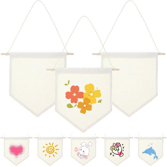 12 PCS Canvas Banners Wall Hanging Brooch Jewelry Storage Case Stand Enamel Pin Display, Sublimation Blank Banner,Holder Earrings Necklace Pin