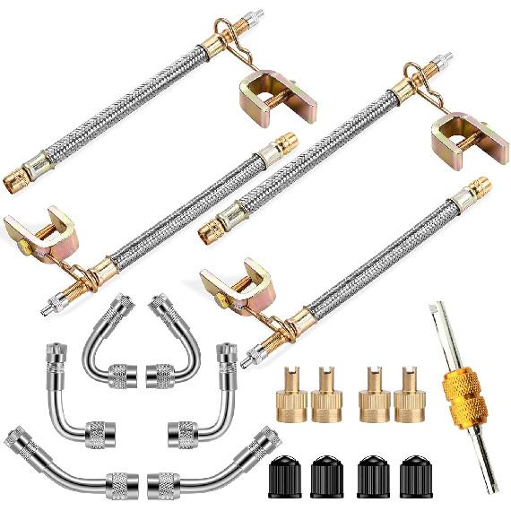 Valve Stem Extenders,4Pcs 7Inch/180mm Dual Flexible Stainless Steel Braided Valve Stem Extensions,6Pieces 45 90 135 Degree Brass Valve Adaptors for