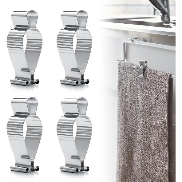 Aieve 4 Pcs Stainless Steel Towel Clips,Hand Towel Clips for Kitchen or Bathroom, Towel Holder Clips for Towel Rack,Oven Handle, Dishwasher, Stove