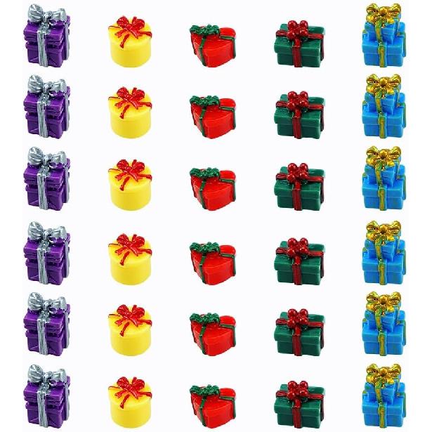 5 Style 30 PCS Miniature Resin Presents Boxes Colorful Micro Holiday Presents for Crafts Festival Tabletop Decors