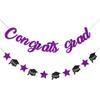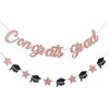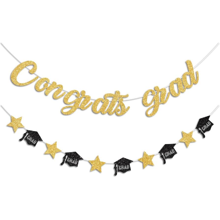 Gold Congrats Grad Banner Glitter Graduation Banner for Graduation Decorations Class of 2026 Party Supplies