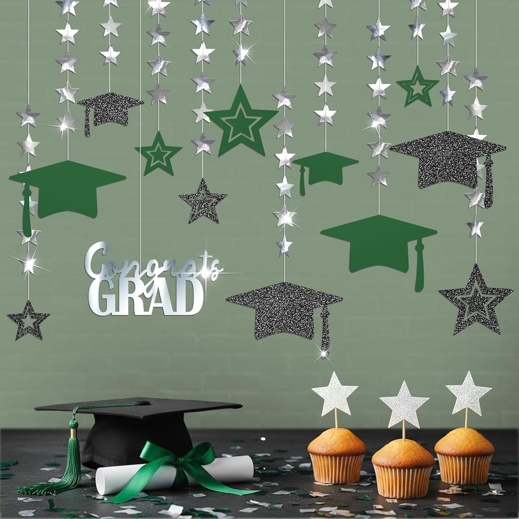 Cheerland 2025 Graduation Banner Party Decorations Green Graduation Cap Garland Kit Congrats Grad Supply for Prom Backdrop Decoration Ceiling Decor