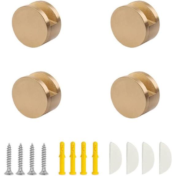 Ackron Mirror Brackets, 4Pcs Aluminum Wall Mount, Gold, 5-11mm Thick Glass, Round Shape