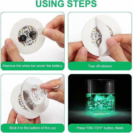 AHIIER 12 Pcs RGB Led Coasters - Multicolor Led Bar Coaster with 7 Colors, Bottle Lights and Sticker Lights for Party, Wedding, Bar