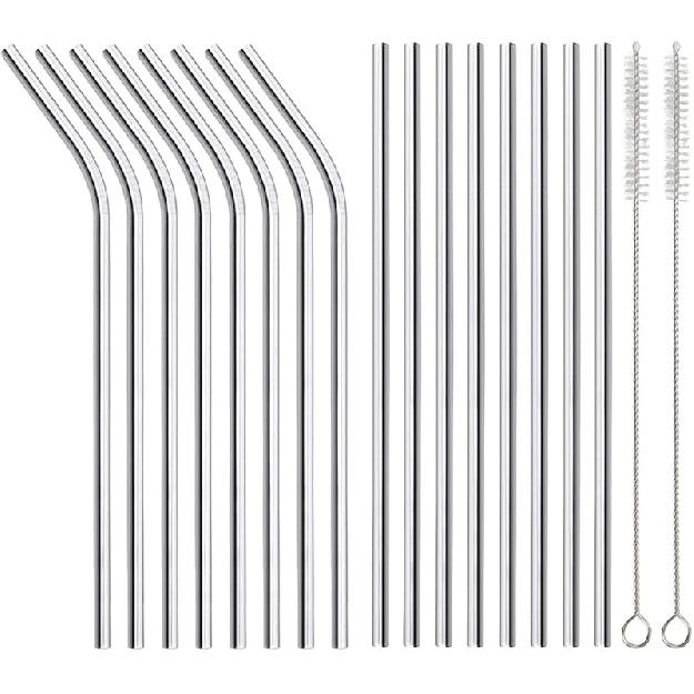 16 Pack of Reble Stainless Steel Metal Straws, 8 Straight + 8 Bent 8.5 Inch Metal Straws with 2 Cleaning Brushes, Straw Compatible with 20oz Stanley