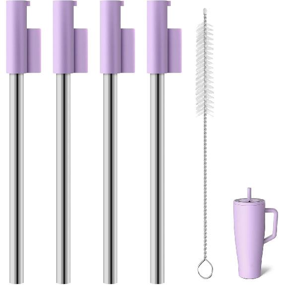 Replacement Straws Compatible With Brümate Era 40 Oz Tumbler, Include 4pcs Tumbler Straw Cover Cap and 4pcs Reble Straw with 1 Cleaning