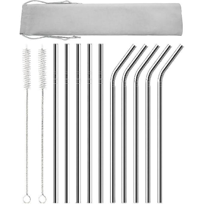 10 Pack Stainless Steel Straws for 40 Oz Tumbler, 12" Reble Long Metal Straw with 2 Cleaner Brush 1 Carry Bag (5 Straight 5 Curved)
