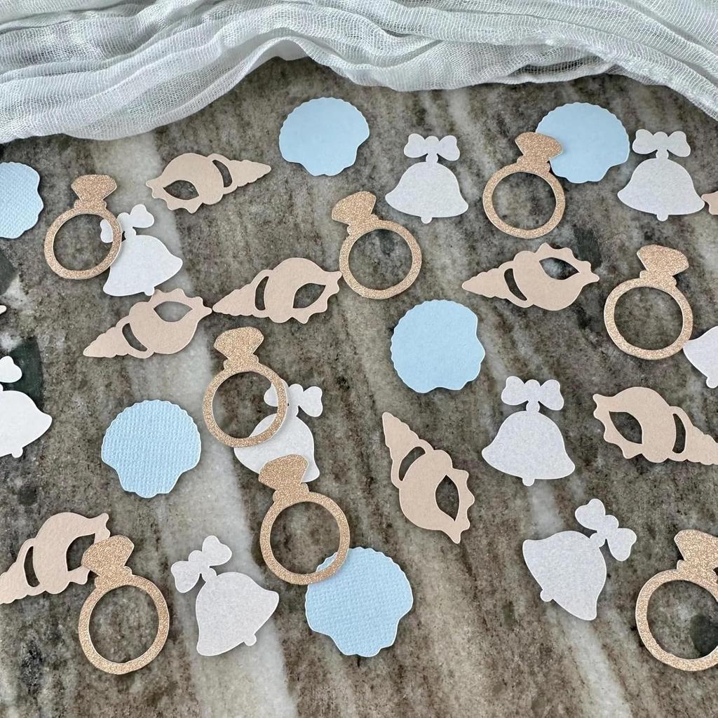 100PCS Seashells and Wedding Bells Confetti,Bachelorette Table Decoration for Ocean Themed Party Decor,Under The Sea Party Supplies
