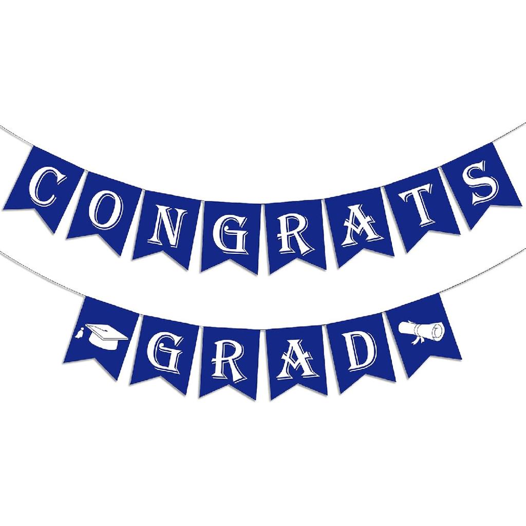 Elegant and Graceful: The blue congrats grad banner printed with white letters adds graduation cap and diploma pictures to light up your grad party, share the success and joy of graduation with those you loved! A great way to celebrate your 2026 graduation! Suitable for Senior School, Middle High School, College, Master or Ph.D. graduate.