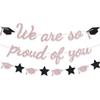 We Are So Proud Of You Banner Graduation Party Decorations Glitter Congratulations Class Grad Ideas Blue Grad Oragne