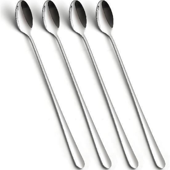 【Health and High Quality Material】These long latte spoons are made of high quality food grade stainless steel with mirror polish, which is sturdy, not easy to bend, anti-rust, Non-toxic, no metal aftertaste, can provide you with years of use