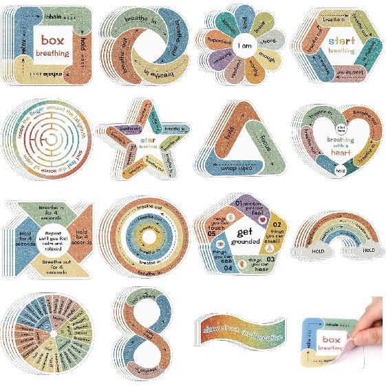 Creative Design : The textured sensory stickers are creatively designed with 15 different styles,include box breathing,finger labyrinth, get grounded,flower breathing,star breathing,finger eight breathing,rainbow breathing,heart breathing and more.Each sticker will provide a unique tactile experience for you and encourage to stay positive everyday