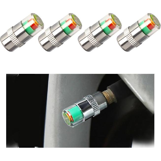 4 PCS Tire Pressure Monitor Valve Stem Caps, 2.4Bar 36PSI Car Tire Pressure Monitor Sensor Indicator with 3-Color Eye Alert, Universal Valve Stem