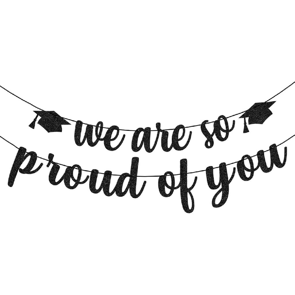 Memorable Message That Elevates Any Celebration Theme - Featuring the heartfelt phrase “We Are So Proud of You” in bold cursive lettering, this graduate decor delivers a clear message of love, pride, and encouragement. More than just a college graduation banner, this graduation banner 2025 becomes a powerful visual centerpiece that resonates deeply with graduates and guests. The graduation decoration adds emotional impact and meaning to every celebration, making it truly unforgettable.