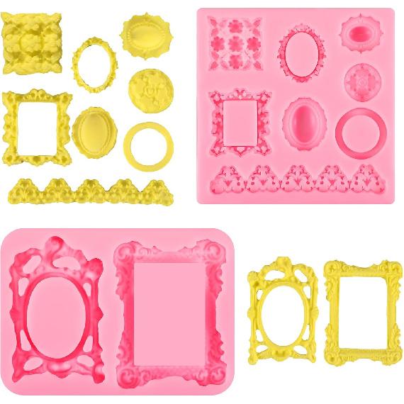 2Pcs Photo Frame Silicone Mold, Mini Frame Air Dry Clay Molds, Baroque Style Frame Chocolate Mold, for Cake Decorating Cupcake Topper Chocolate Candy