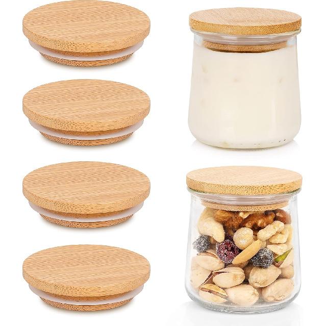 【MULTI-FUNCTIONAL STORAGE LIDS】Bamboo lids for oui yogurt jars fit large and small glass jars and can be used to store, fresh sauces or juices, store screws and nails, dry storage, spices and more.