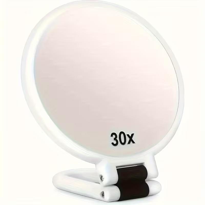 Handheld Makeup Mirror, 30x Magnification, 360 ° Rotating Handle, Foldable and Portable for Travel. Suitable for Eyebrow Shaping