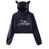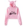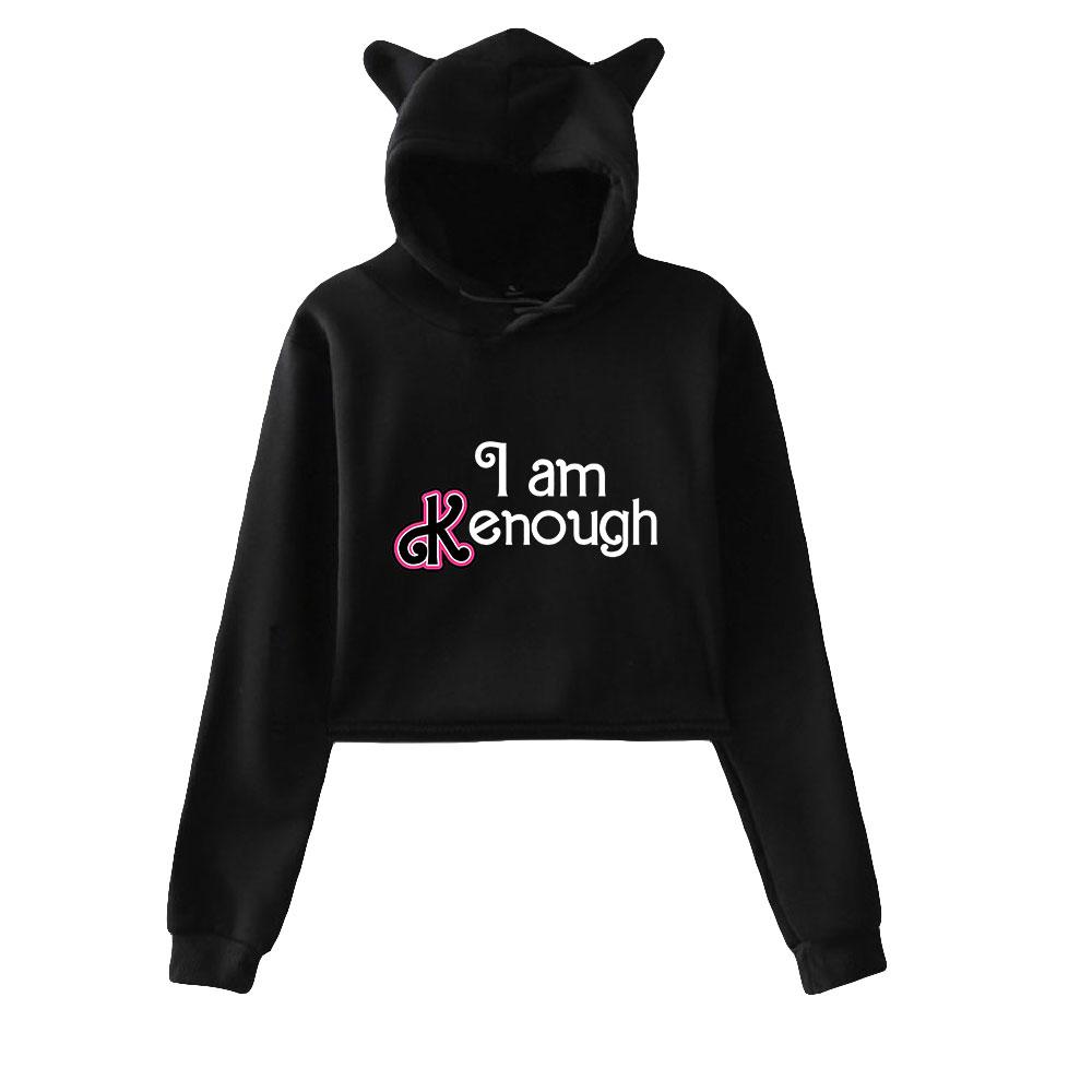 NEW Women's Long Sleeve Crop Top Hoodie Barbie I Am Kenough Printed Hoody with Cute Cat Ear