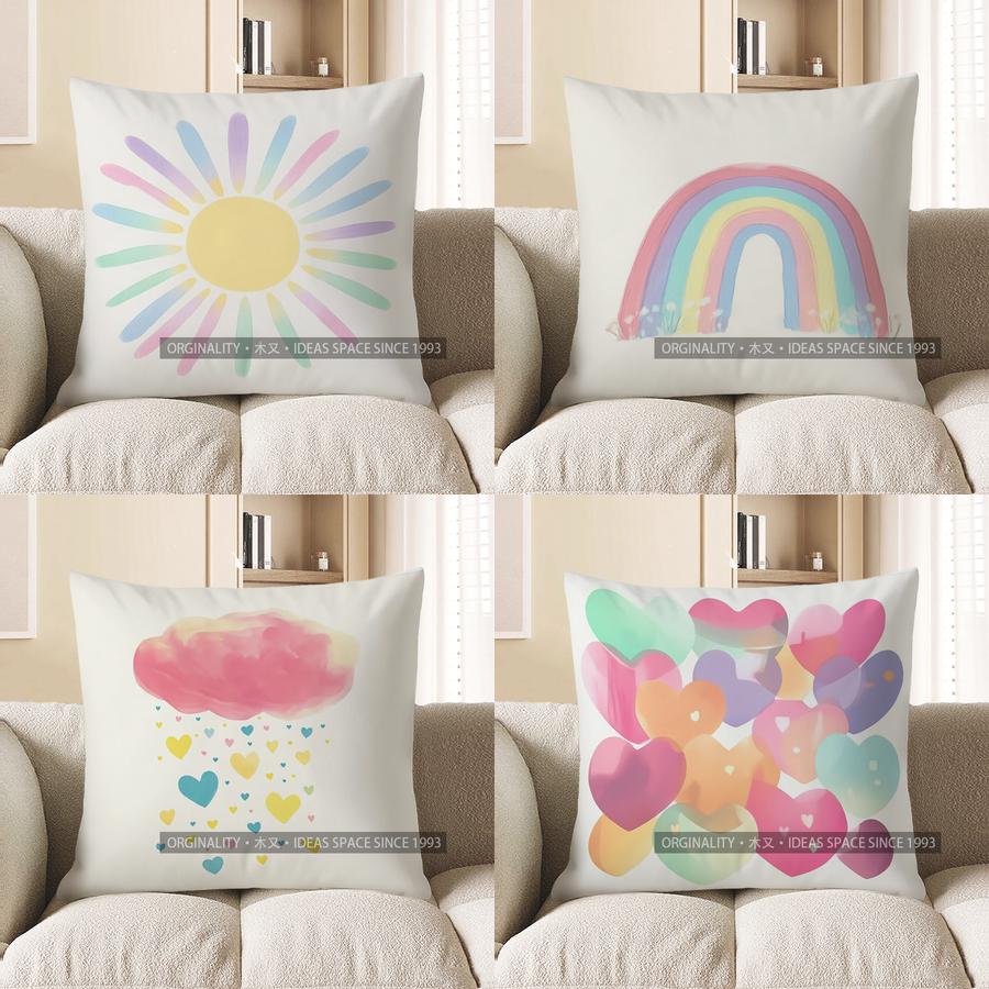 Home Decor Colorful Gradient Sun Design Pillow Cover Pattern Cushion Cover Suitable For Sofa Bedroom Car Pillow Cover