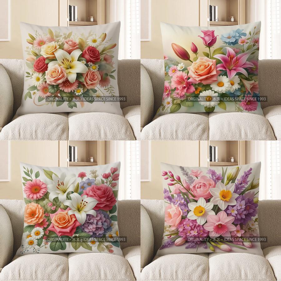 Home Decor Bouquet Of Flowers Decorative Throw Pillow Pattern Cushion Cover Suitable For Sofa Bedroom Car Pillow Cover