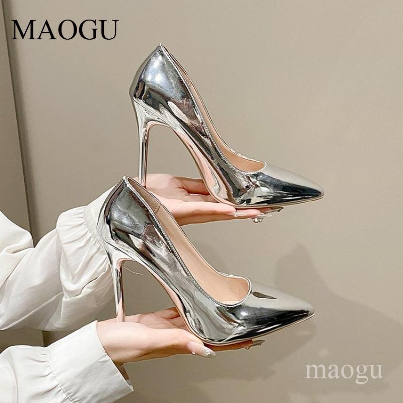 Pointed Toe Stiletto Heels Women's Patent Leather Pumps Shiny High Heel Dress Shoes for Party Slip On Sandalias De Mujer Size 34
