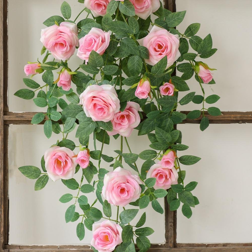 Artificial Flower Faux Rose Vine Realistic Floral Design 11 Large Flowers 10 Small Flowers Elegant Cascade Effect