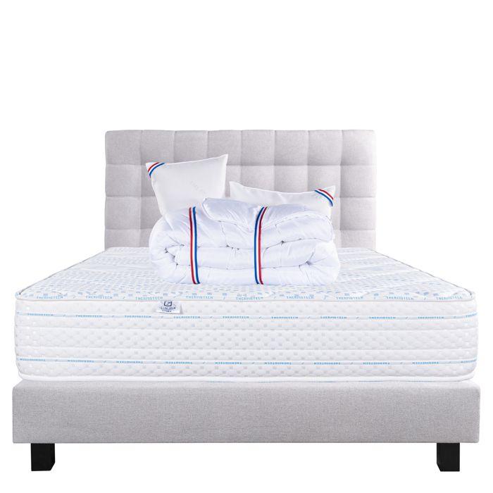 Mattress Set 140x200 Cm, Thermotec, 24 Cm, Firm, Summer/winter Side + Grey Bed Base Ep20cm + 2 Pillows + Duvet + Headboard