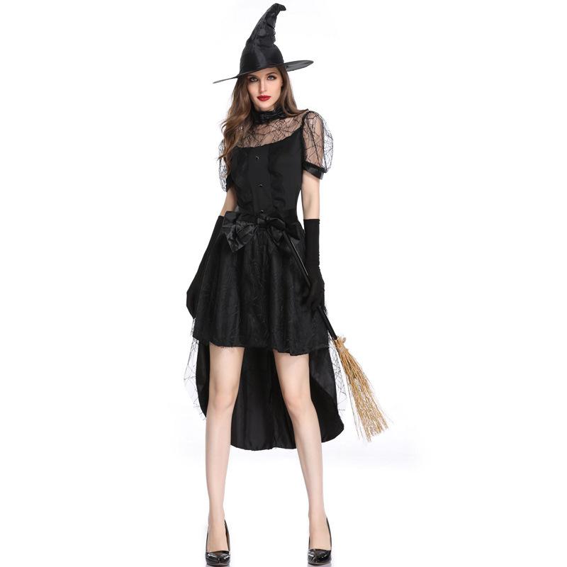 New Halloween Witch Costume Adult Cosplay Black Witch Long Dress Cosplay Costume