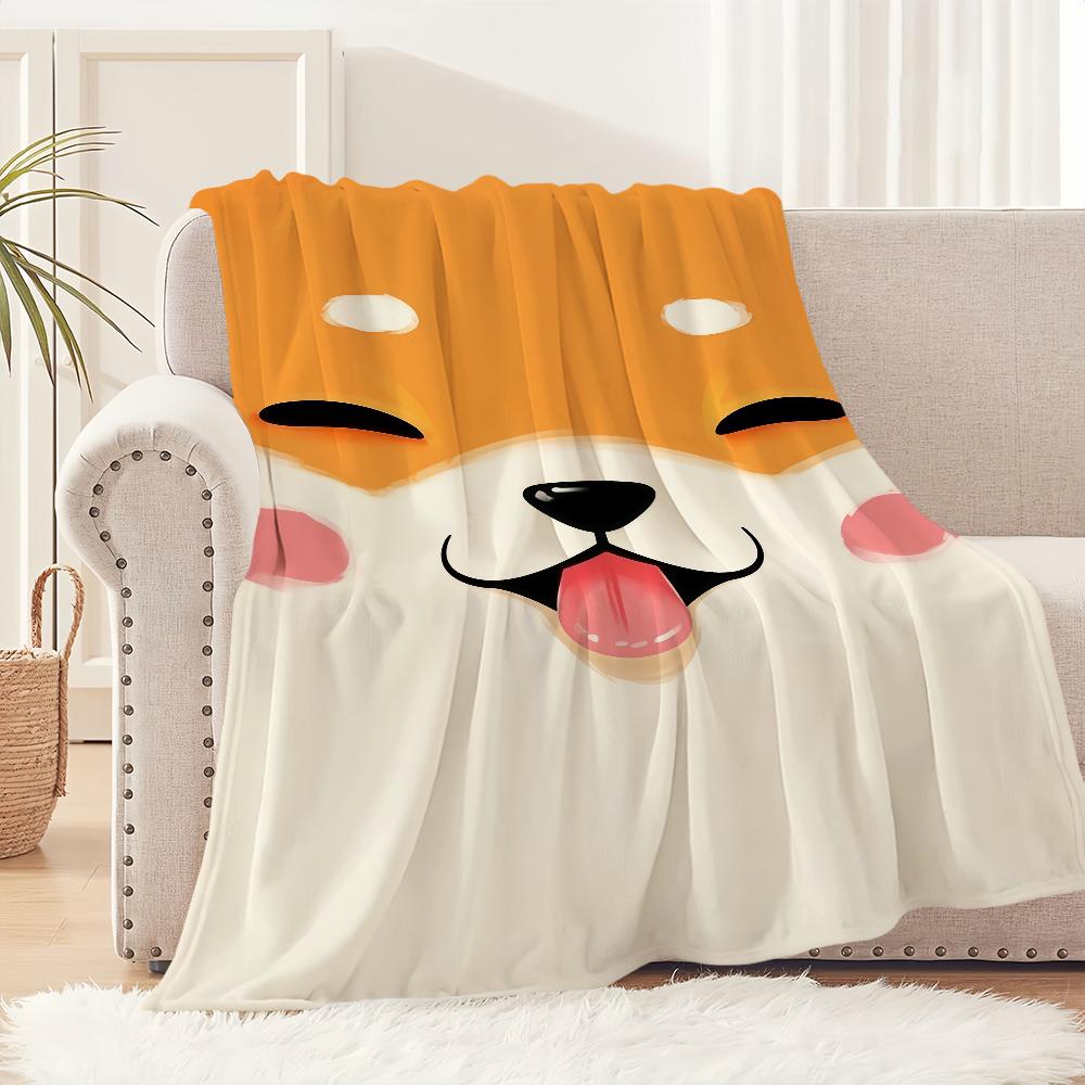 Cute Puppy Corgi Cartoon Dog Funny Face Flannel Warm Comfort Soft Plush Blanket for Sofa Living Room Office Bedroom Travel Gift
