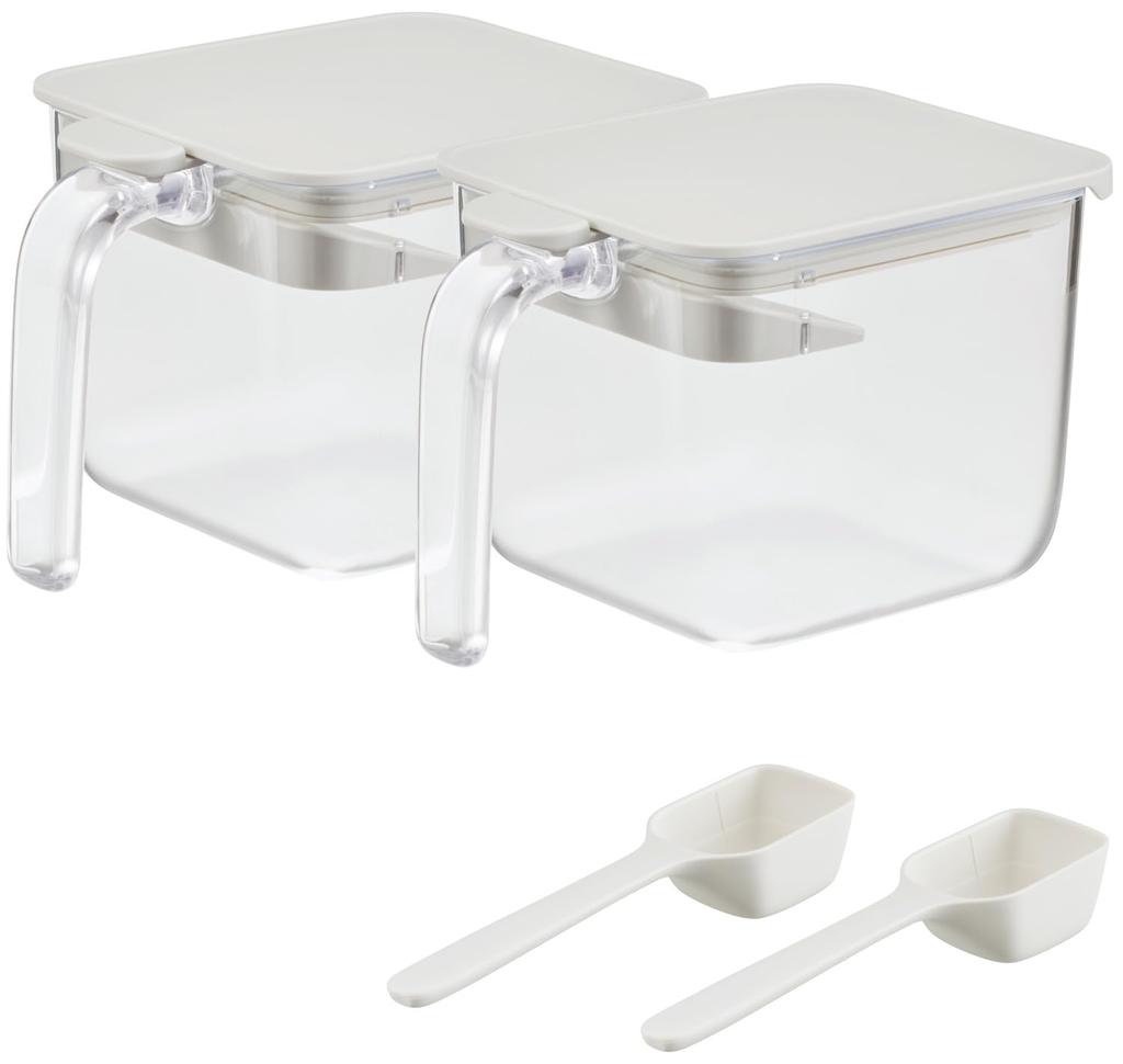 Marna Seasoning Pot with Spoon Seasoning Container Salt and Sugar Shakers Good Lock Container R305W (One-Touch Opening), (with Moisture-Proof Gasket),