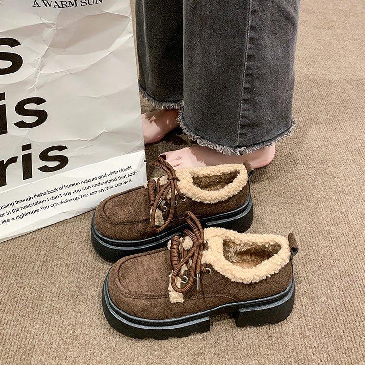 Plush Shoes Muffin Bottom Retro Style Simple Foreign Style Small Fragrant Style Loafers Heightening Cotton Shoes