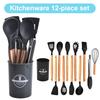12Pcs Kitchen Utensil Set Silicone Spatula Set with Holder Non-Stick Spatula Set Spatula Spoon Brush Whisk Kitchen Supplies
