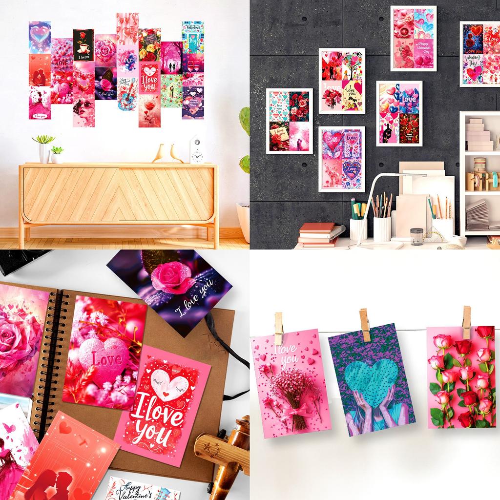50 Valentine's Day Wall Decoration Cards For Living Room, Bedroom, Study Room Message Postcards