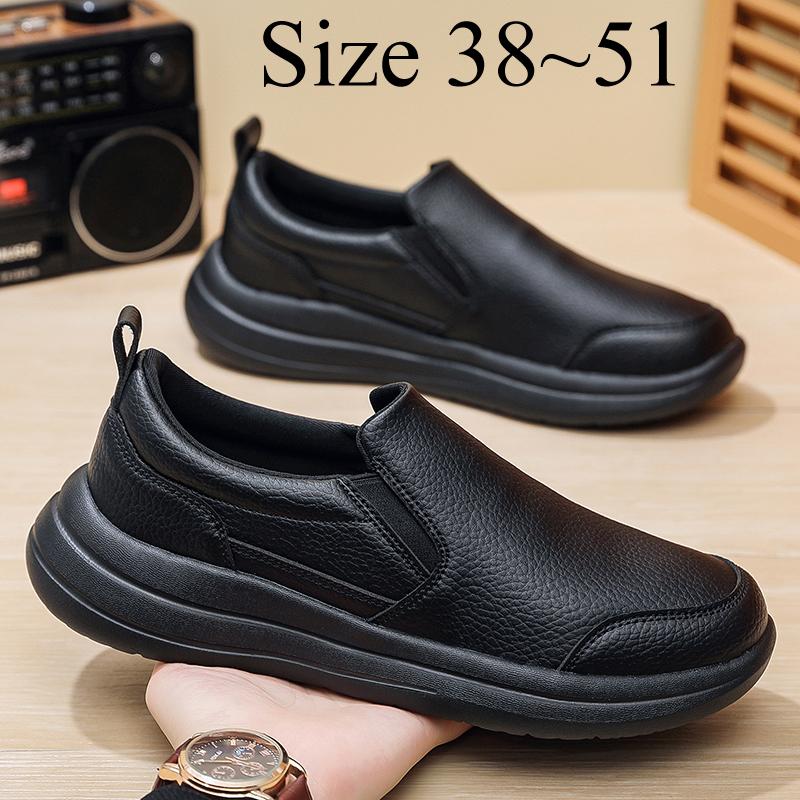 Men's Slip On Leather Sneakers Comfort Casual Sports Shoes Walking Waterproof Black Athletic Shoes Plus Big Size 48 49 50