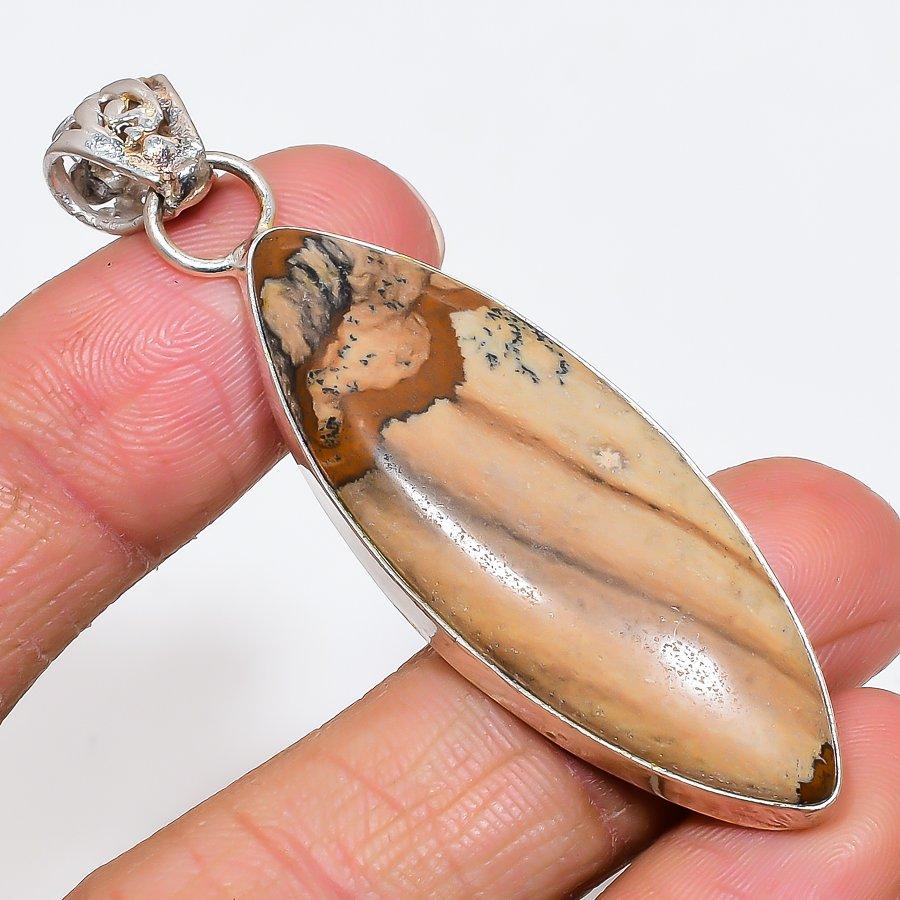 Natural Picture Jasper Gemstone 925 Sterling Silver Jewelry Pendant 2.56"