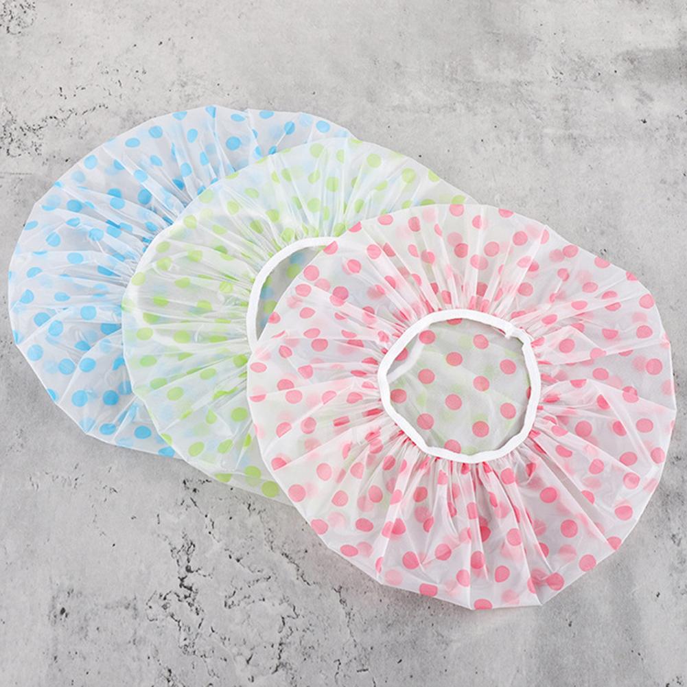 Pink Polka Dot Shower Cap PE Material Waterproof Soft Elastic Band Secure Fit Travel Friendly Lightweight Foldable Hair Protect