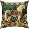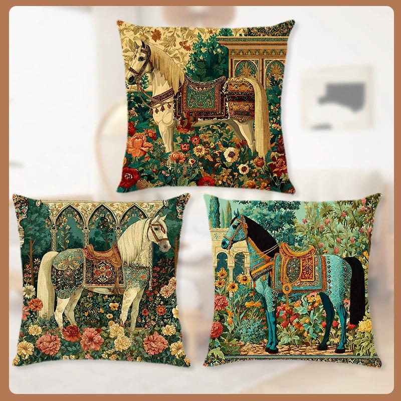 Horse Floral Pillow Cover Polyester Artistic Home Decor Sofa Bed Cushion Skin Friendly Soft Plush Invisible Zipper Decor Gift