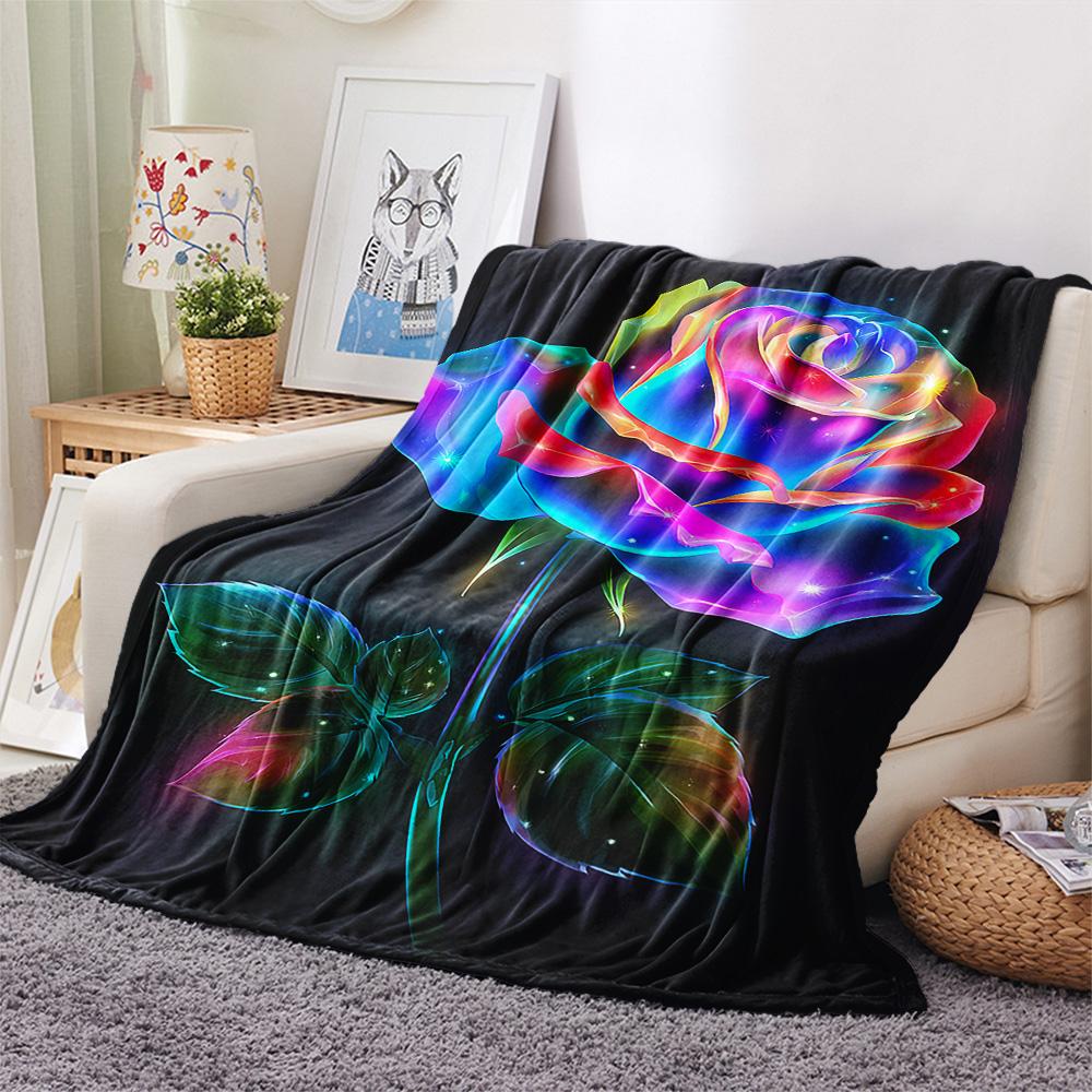 Rose Print Flannel Blanket, High Quality Comfortable for All Seasons, Home Decor, Warmth and Comfort, Perfect for Christmas Gifts
